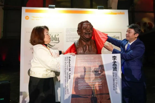 在展会的特别环节中,由中国贵州著名雕塑家李钢先生创作的李孟贤雕塑被揭晓,茅台代表团将“荣耀卡片”赠予李孟贤家人,以此纪念茅台与旧金山这座城市的深厚情谊。“在我先生故去八周年之际,我收到来自茅台如此厚重、珍贵的礼物,令我惊喜万分,我相信我先生在天上也在开怀大笑。”李孟贤的夫人Anita Lee女士动情讲道。