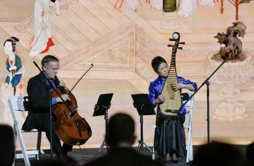 晚宴的每一个环节都藏着“中西融合”的巧思:开场的大提琴与琵琶合奏,将美式慵懒曲风与东方韵味巧妙结合;短片《1915-2015-2025:茅台与世界的110年》中,黑白影像与现代场景交替闪现,回顾茅台百年成长;肢体艺术家Olga Sokolova与她创立的MIDL GROUND舞团带来的作品《城市之光》,在舞蹈中融入了中国功夫的动作,以舞者身体作笔,勾勒出这座城市的天际线,让观者感受到旧金山的繁华与自由。